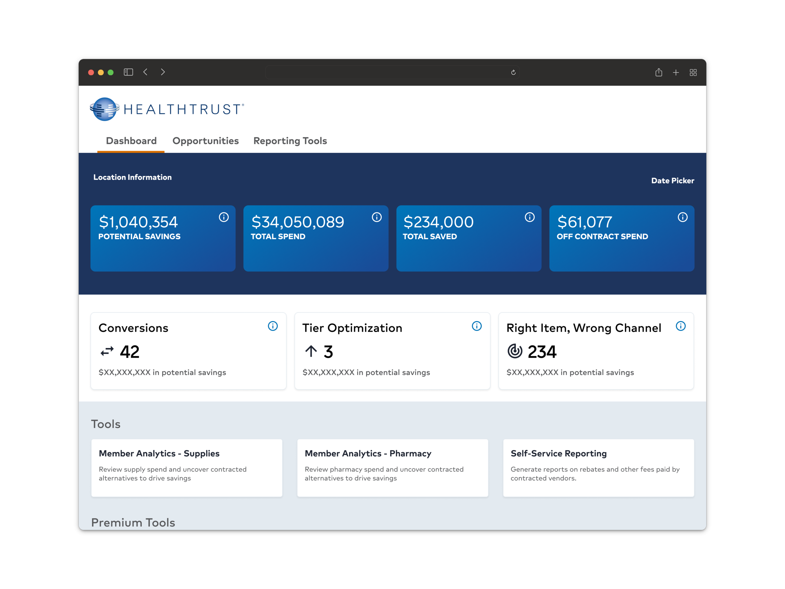 We uncovered that most hospitals don’t have access to HealthTrust’s analytics tools and instead depended on either asking their account rep to give them access to reports or downloading raw data to make their own.